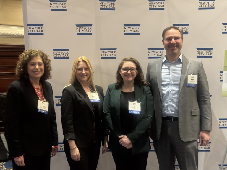 Lisa Fried-Grodin was a speaker at the 2026 Employment Law Conference presented by the New York City Bar Association on March 5, 2026. Here, Lisa is pictured (second from the right) with two of her fellow speakers from their panel discussion on Recent Developments in Non-Competes and Other Restrictive Covenants, Jerrold Goldberg (on left) and Daryl Leon (on right), and Regina Faul, chair of the City Bar’s Labor and Employment Committee.